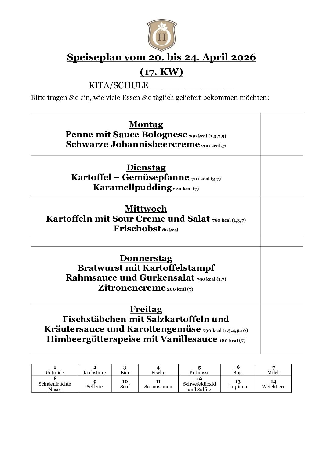Speiseplan KW 17 Hier finden Sie den Speiseplan für die Woche vom 20. bis 24. April 2026. Speiseplan KW 17 PDF, 133 KB Veröffentlicht am 17. April 2026 Veröffentlicht in OGS
