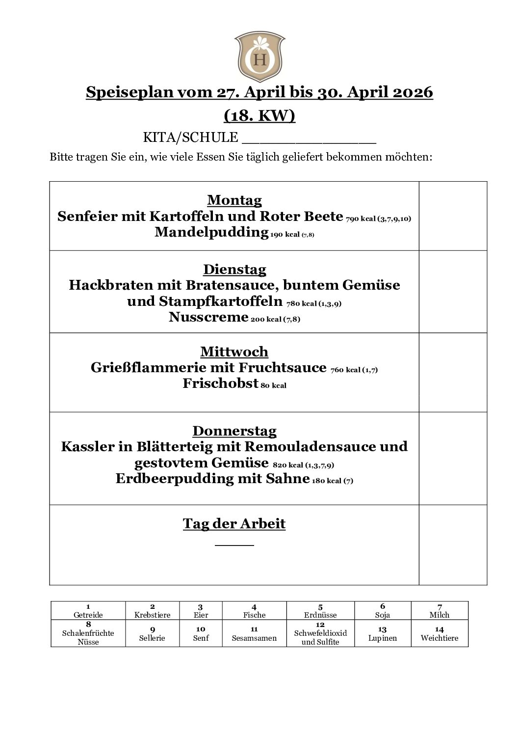 Speiseplan KW 18 Hier finden Sie den Speiseplan für die Woche vom 27. bis 30 April 2026. Speiseplan KW 18 PDF, 131 KB Veröffentlicht am 28. April 2026 Veröffentlicht in OGS